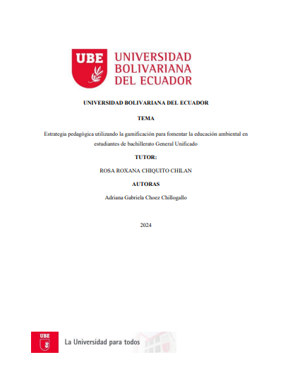 Choez Chillogallo, A. G. (2024). Estrategia pedagógica utilizando la gamificación para fomentar la educación ambiental en estudiantes de bachillerato General Unificado. Universidad Bolivariana del Ecuador